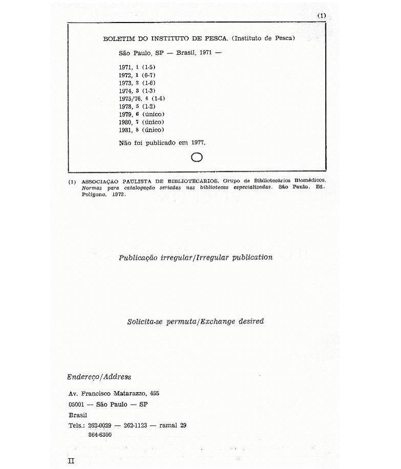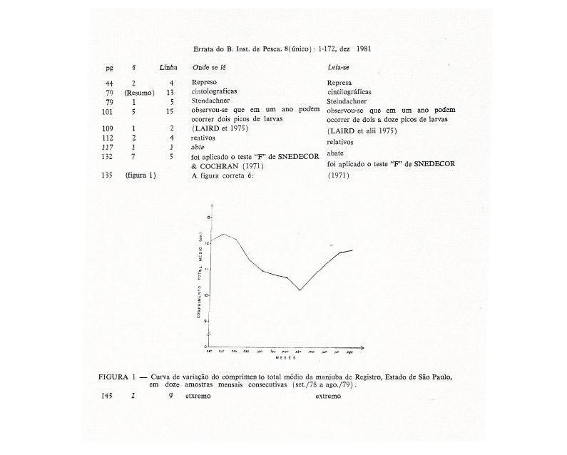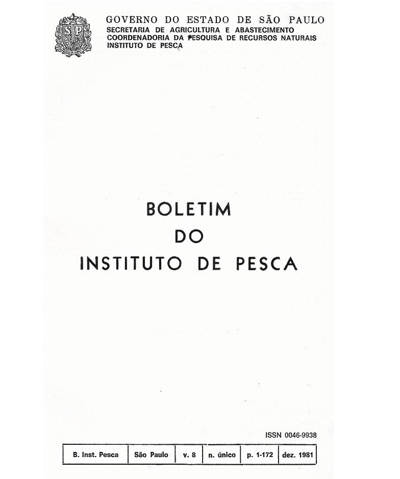 Vol. 8 No. único (1981): BOLETIM DO INSTITUTO DE PESCA