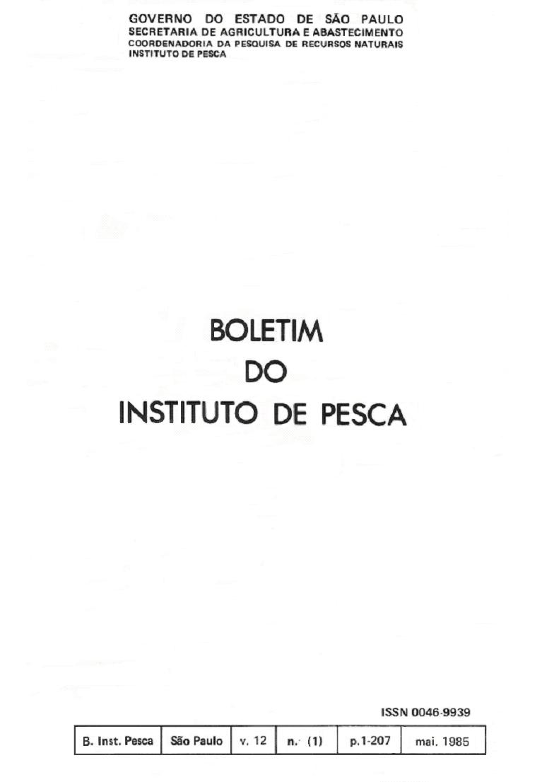 Vol. 12 No. 1 (1985): BOLETIM DO INSTITUTO DE PESCA